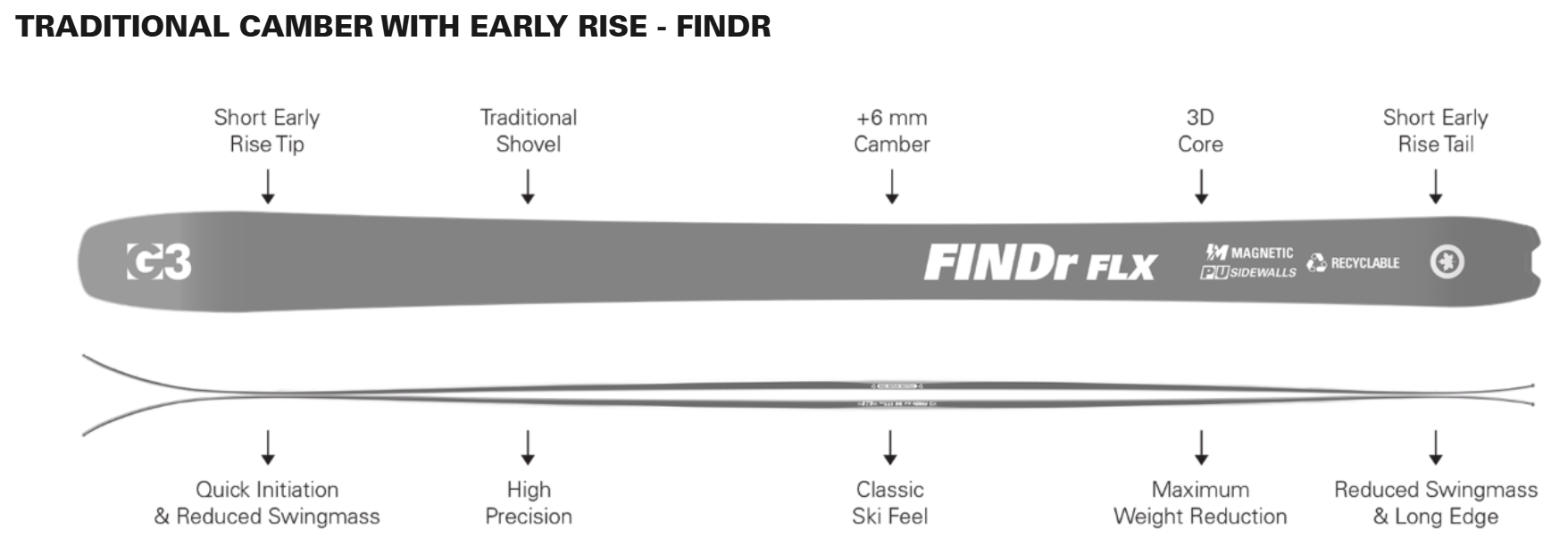 Η κατασκευή από υαλοΐνες και τα πλαϊνά τοιχώματα από πολυουρεθάνη μεταμορφώνουν το αγαπημένο σχήμα του FINDr 94 R3 σε ένα υψηλών επιδόσεων 50/50 σκι, προσφέροντας εξαιρετική απόδοση τόσο εντός όσο και εκτός πίστας. Η αντοχή και η σταθερότητα έχουν βελτιωθεί σημαντικά.