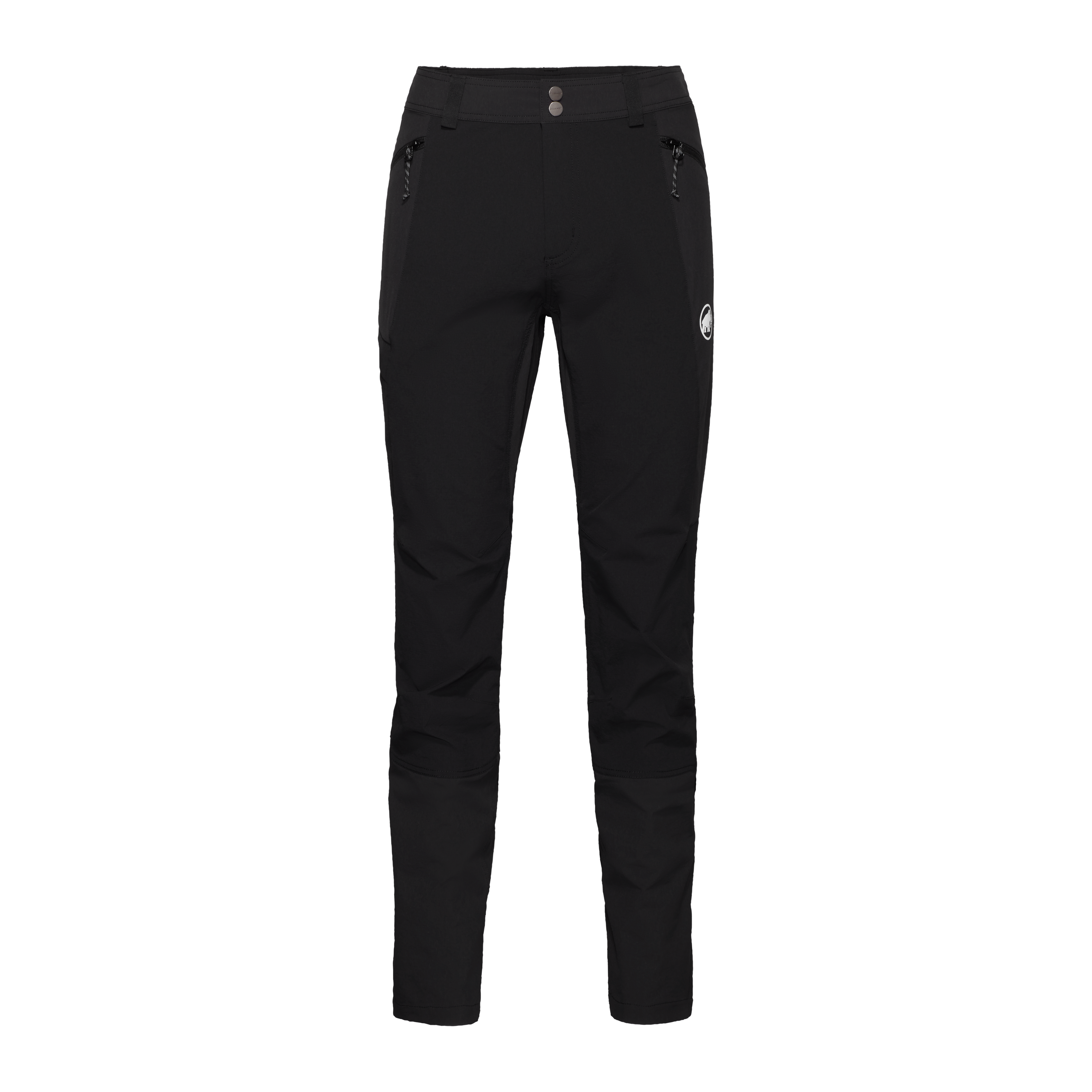 The pants are built with a strong focus on practical details. They feature an elasticated rear waistband, belt loops, a concealed fly with snap buttons, a gusset crotch for greater freedom of movement, two zippered front pockets, and a harness-compatible zippered leg pocket. These elements make the model suitable not only for classic hikes, but also for more technical routes.