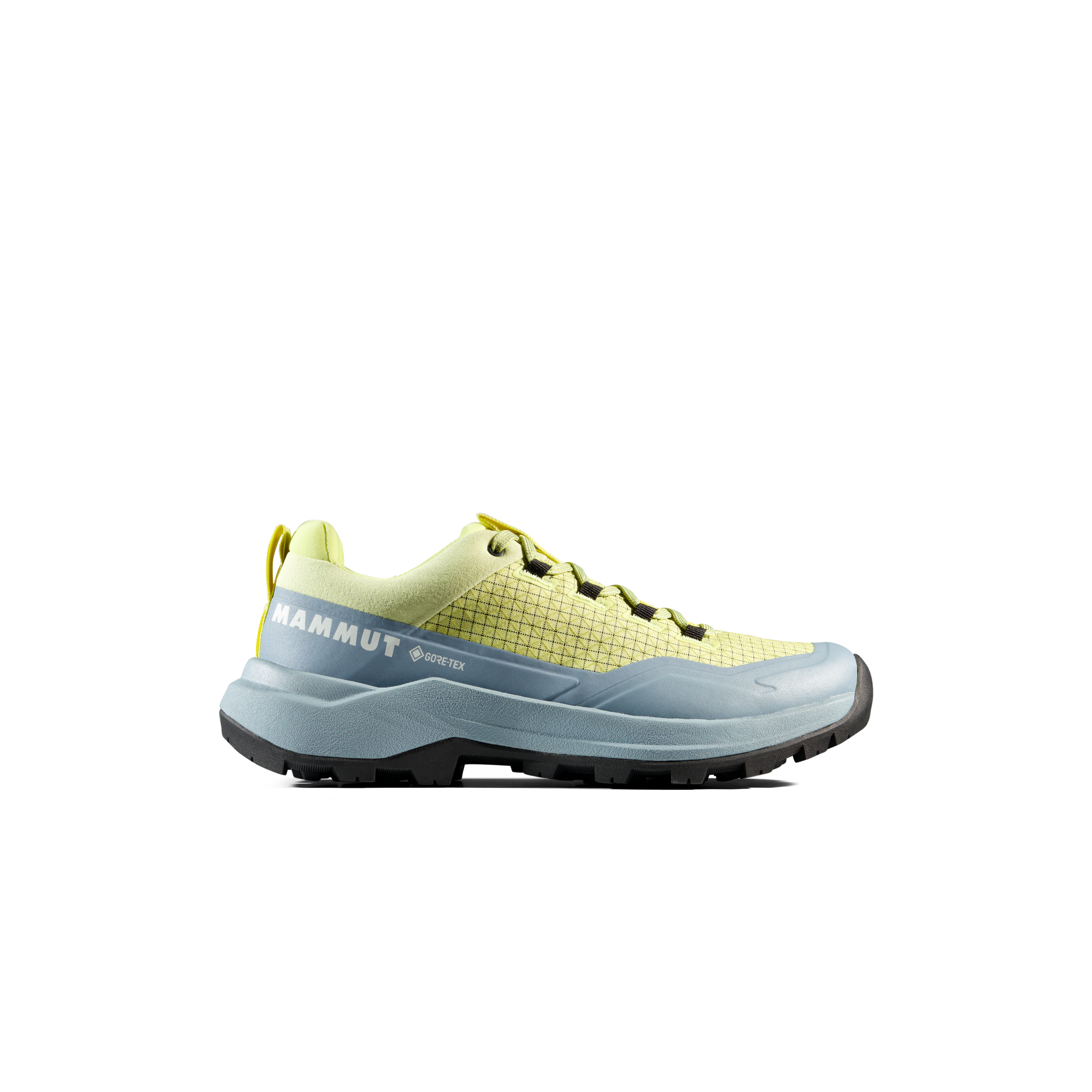 The upper is made from Double Layer Engineered Mesh, combining low weight with solid durability. The manufacturer also highlights an abrasion-resistant fabric upper and rubber rand, which improve protection and durability on rougher surfaces. The Mammut Swiss Design outsole is built for reliable grip in low temperatures, making the shoe a dependable option for mixed terrain and cooler conditions.