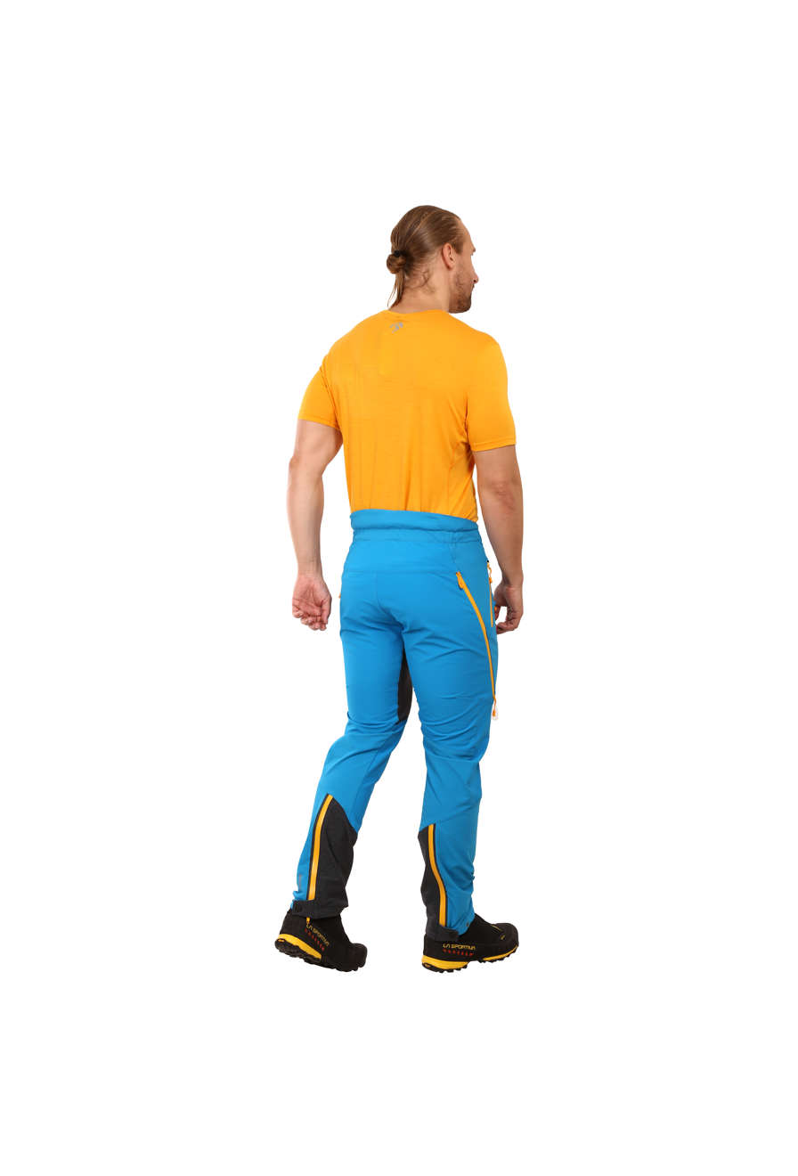 Παντελόνια ορειβασίας με υψηλό τεχνικό κόψιμο, ειδικά σχεδιασμένα για ορειβατικό σκι και ημερήσιες εκδρομές σε περιοχές βουνού, αναρρίχηση στον πάγο και σε μικτό έδαφος, καθώς και για αναψυκτικό σκι αντοχής. Όλες οι τεχνικές λεπτομέρειες, η επιλογή υλικού και η κοπή έχουν σχεδιαστεί ειδικά για τις απαιτήσεις που θέτετε στον εξοπλισμό σας για τα χειμερινά σπορ. Το κύριο υλικό στις εκτεθειμένες περιοχές είναι ανθεκτικό στη φθορά και ευλύγιστο, με ένα εσωτερικό στρώμα από Thermolite®. Επιπλέον, συμπληρώνεται με πάνελ από πολύ ευλύγιστο, αναπνεύσιμο υλικό για αποτελεσματικό αερισμό της περίσσειας θερμότητας. Η λείαι εσωτερική πλευρά επιτρέπει επίσης να φορεθεί άμεσα πάνω στο δέρμα. Τα τεχνικά χαρακτηριστικά μεγιστοποιούν την άνεσή σας και διευκολύνουν τις δραστηριότητες που σχετίζονται με το αγαπημένο σας άθλημα: μια άνοιγμα στο κάτω μέρος των ποδιών των παντελονιών για εύκολο πέρασμα μεταξύ των λειτουργιών βάδισης / σκι των ορειβατικών σας μπότες, εξοπλισμένες με Velcro για να αποτρέπουν την είσοδο χιονιού στα παντελόνια και μια θηλιά για εύκολη χειρισμό με γάντια. Τα παντελόνια είναι εξοπλισμένα με φερμουάρ στο κάτω μέρος με δύο αντίθετους κύλινδρους, οι οποίοι επιτρέπουν το άνοιγμα των παντελονιών κατά την τοποθέτηση και αφαίρεση των μποτών, καθώς και εύκολη πρόσβαση στις αλυσίδες των μποτών. Η τέλεια ανατομική κοπή βασίζεται στη φυσική μορφή του ανθρώπινου σώματος και κινείται μαζί σας όσο προχωράτε — εφαρμόζοντας τέλεια και προσφέροντας μέγιστη άνεση.