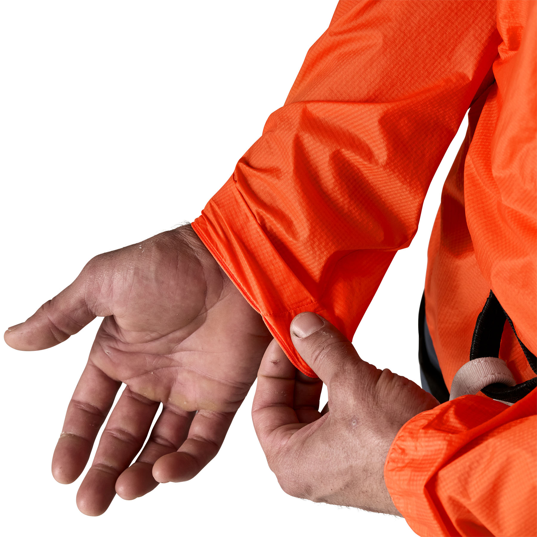 The helmet-compatible, easy-off hood adjusts two ways and can be pulled on or off with one hand, even when fully zipped. The slim, climb-specific fit provides extra room in the shoulders for overhead mobility, while deep center-front zip vents make it easy to take the jacket on or off or release heat during intense climbs.