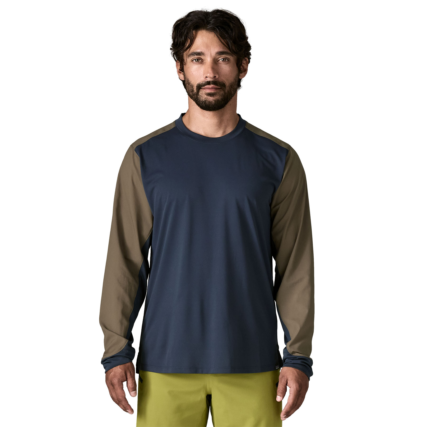 Hybrid panels on the sleeves stretch to accommodate low-profile elbow pads, and the cuffs stay in place when they're pushed up the forearm
