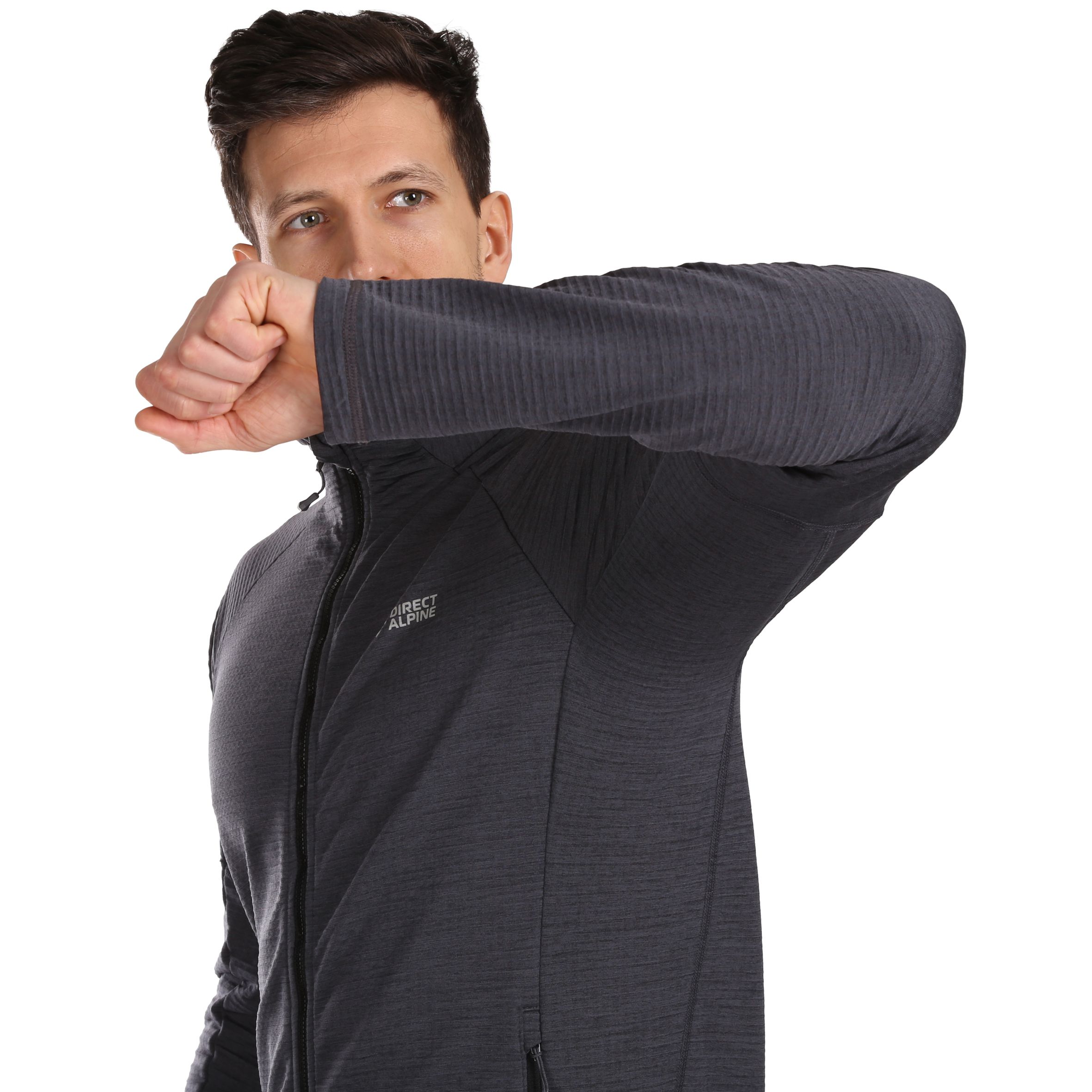 The CIMA fleece sweatshirt is a technical insulation layer made from recycled Kinetix Grid fleece, designed to wick away excess moisture and keep you dry and comfortable in any condition. The fabric is lightweight, breathable, and stretchy, making it ideal for mountain expeditions, ski touring, climbing, or casual urban use.